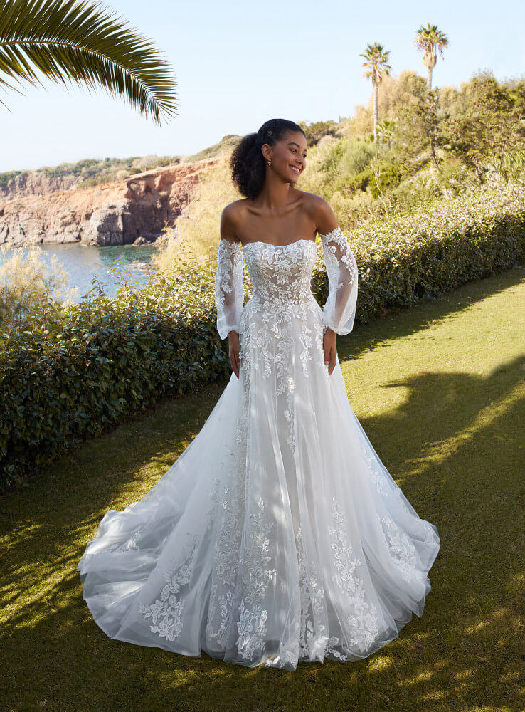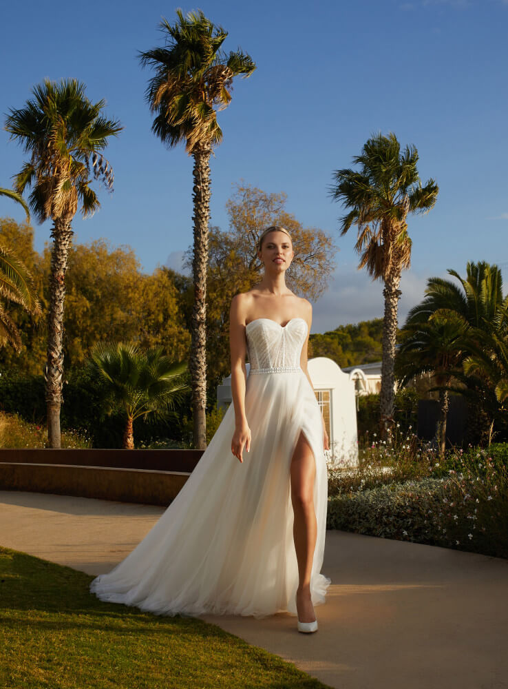 Zie je jezelf al helemaal in een elegante jurk rechtstreeks uit de Milanese modewereld? Wij helpen en adviseren je graag tijdens je zoektocht. Santerello beschikt over een ruime collectie van Cosmobella-trouwjurken, van eenvoudige japons tot uitvoerig versierde ‘prinsessenjurken’. We zien je graag verschijnen!