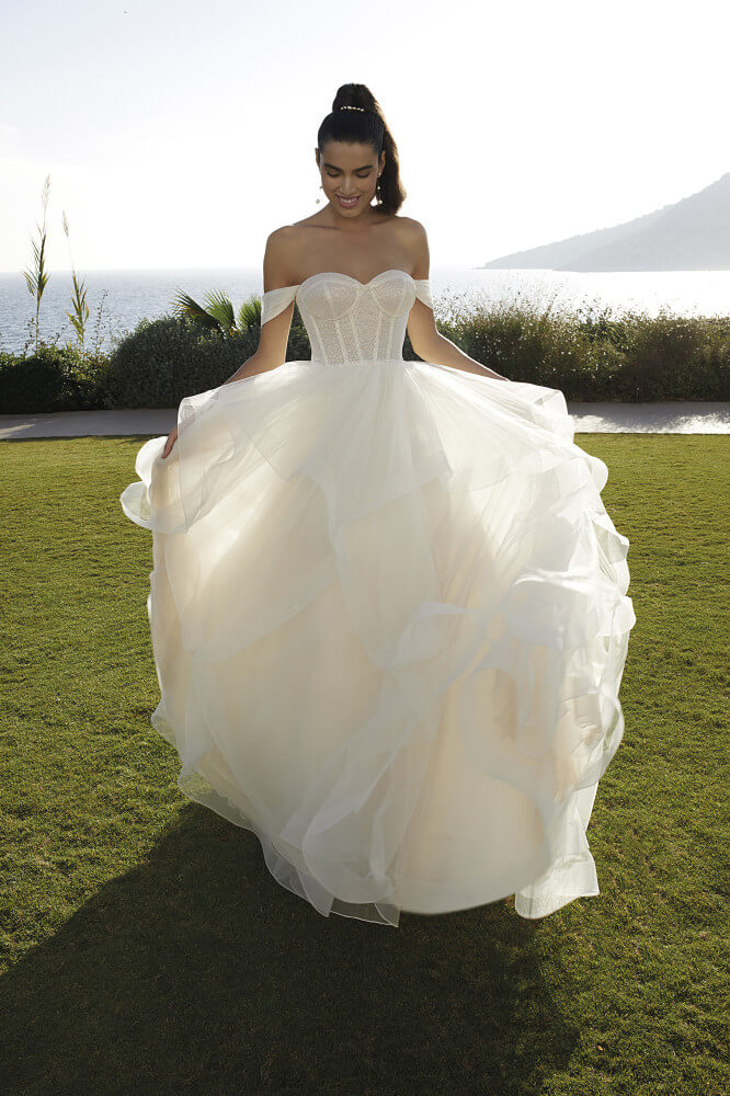De bruidsjurken zijn tijdloos en elegant en het uitgangspunt is dat elke jurk ‘licht’ moet ogen, zodat jij als bruid het stralende middelpunt bent. In de collectie vind je zowel sensuele, eenvoudige als uitbundige trouwjurken.