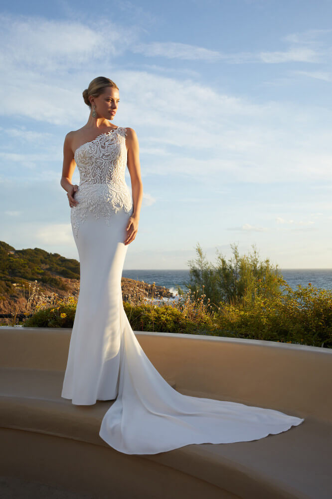 Cosmobella is het italiaans Bruidsmode merk uit het mooie Milaan en is onderdeel van het top merk Demetrios. De collectie heeft stijlvolle, klassieke en sexy trouwjurken alleen in een lagere prijs dan het merk Demetrios. Bewonder deze mooie collectie bij ons in de winkel en vind klassieke designs welke prachtig om je lijf vallen en je mooiste rondingen uit brengen. Bij deze bruidsmode collectie vind je ontwerpen met kant, stenen, parels en lage ruggen.